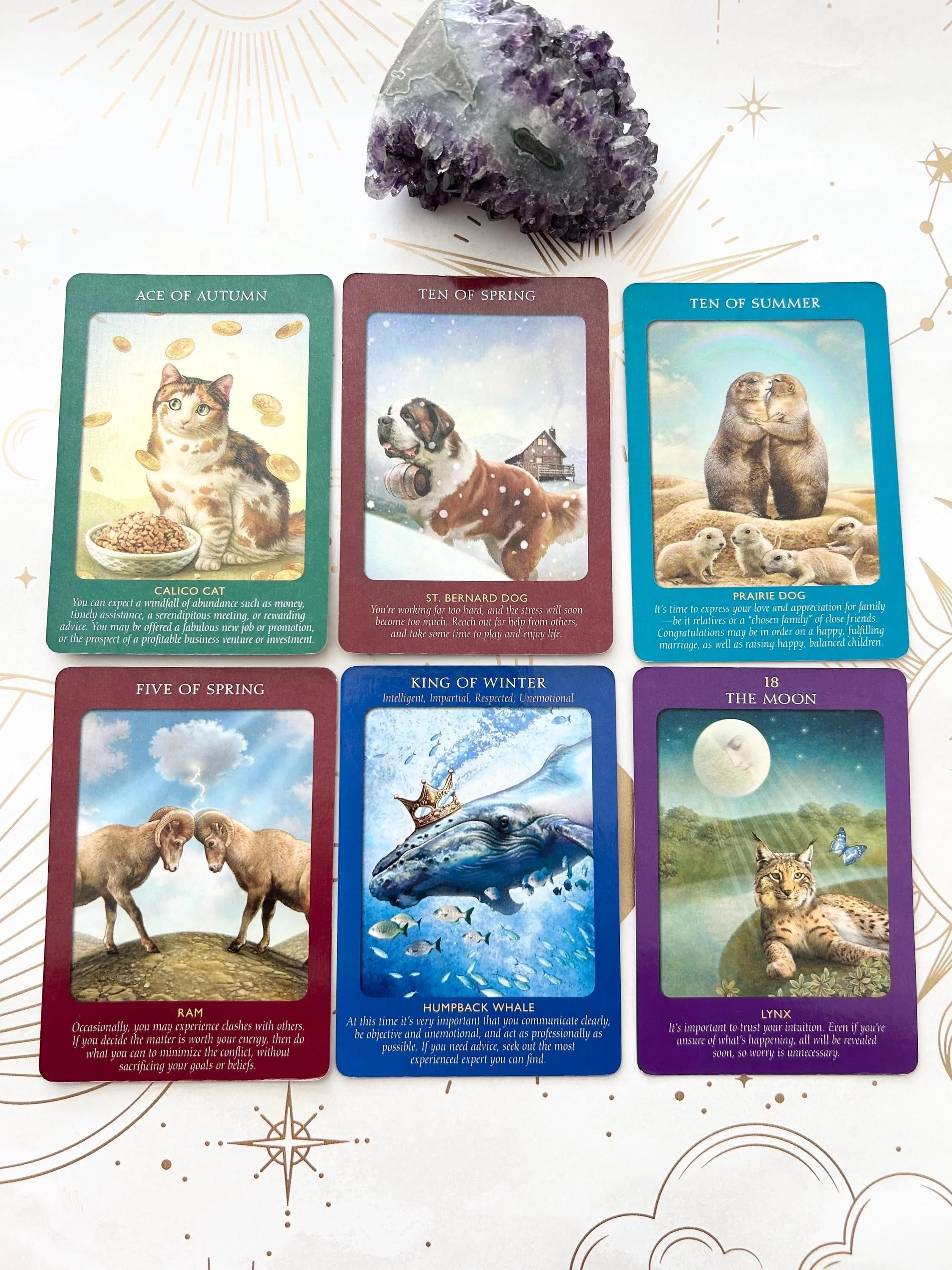 This listing is for the gorgeous Animal Tarot cards by popular former Hay House author Doreen Virtue & Radleigh Valentine. These cards have are excellent for using for all types of tarot readings.