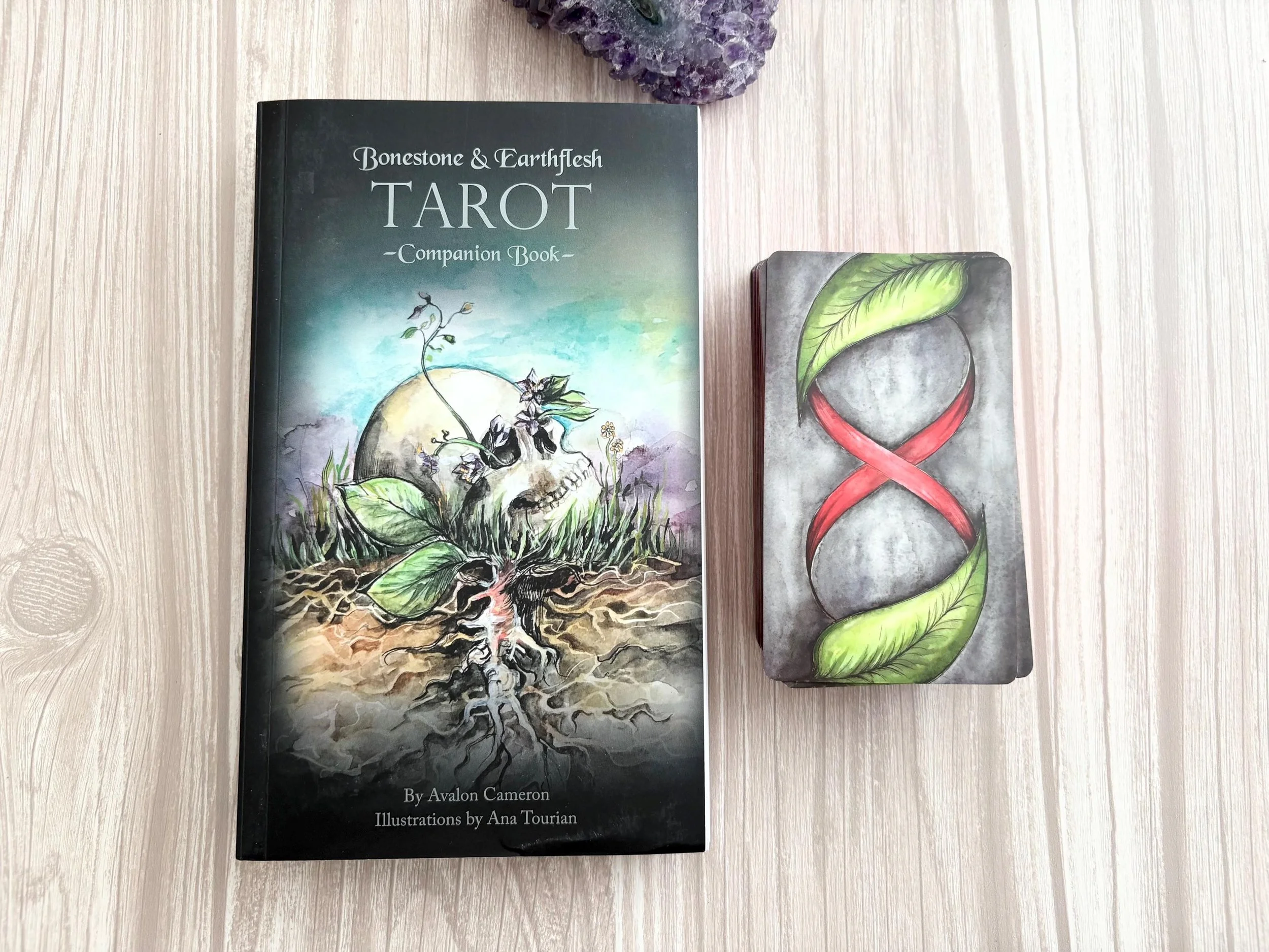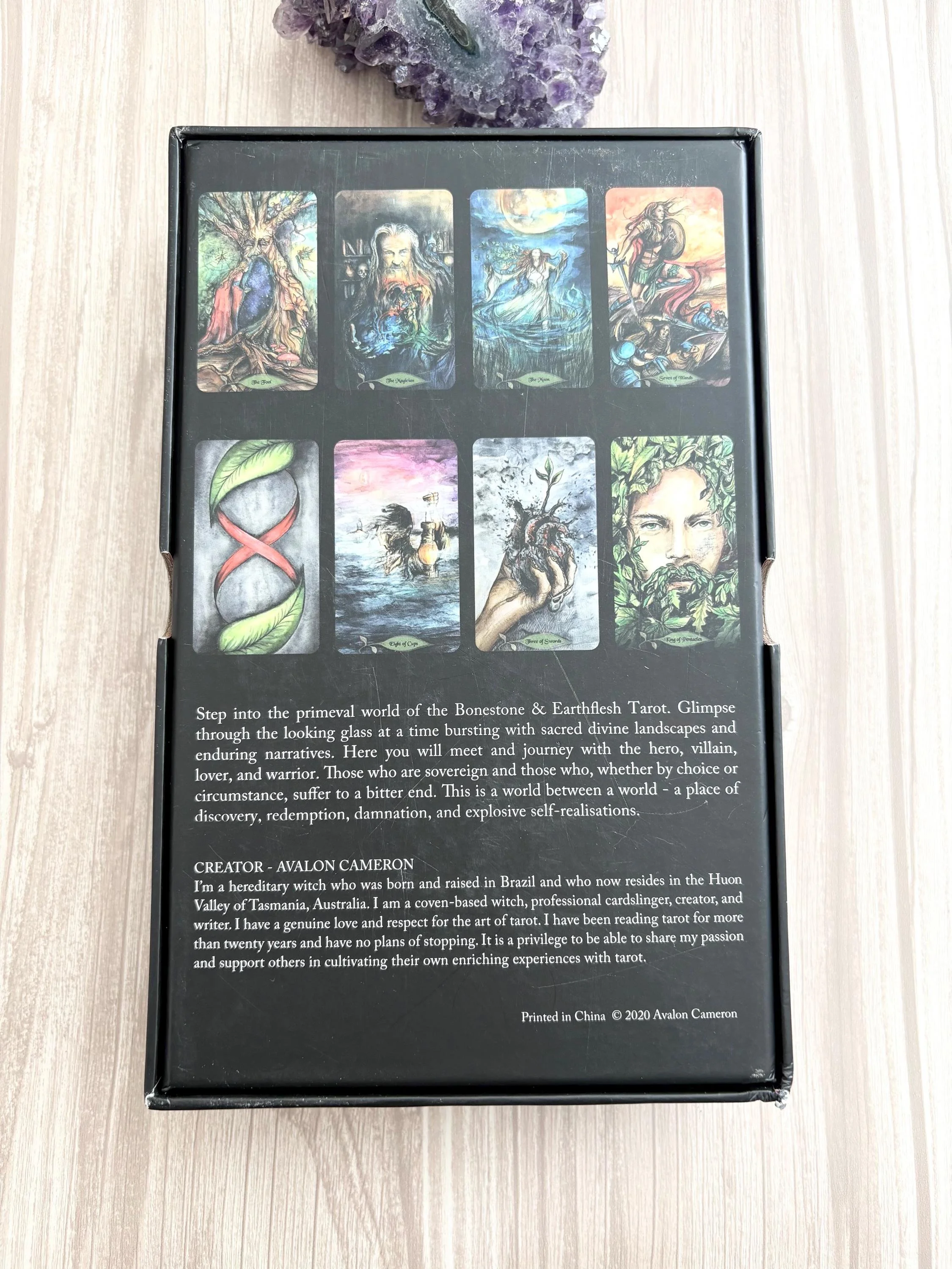 This listing is for the gorgeous Bonestone & Earthflesh Tarot deck 1st edition by Avalon Cameron. This is a rare opportunity to acquire this amazing tarot deck. Only 1000 were made initially and the idea was develop on youtube via bonestone bashes.