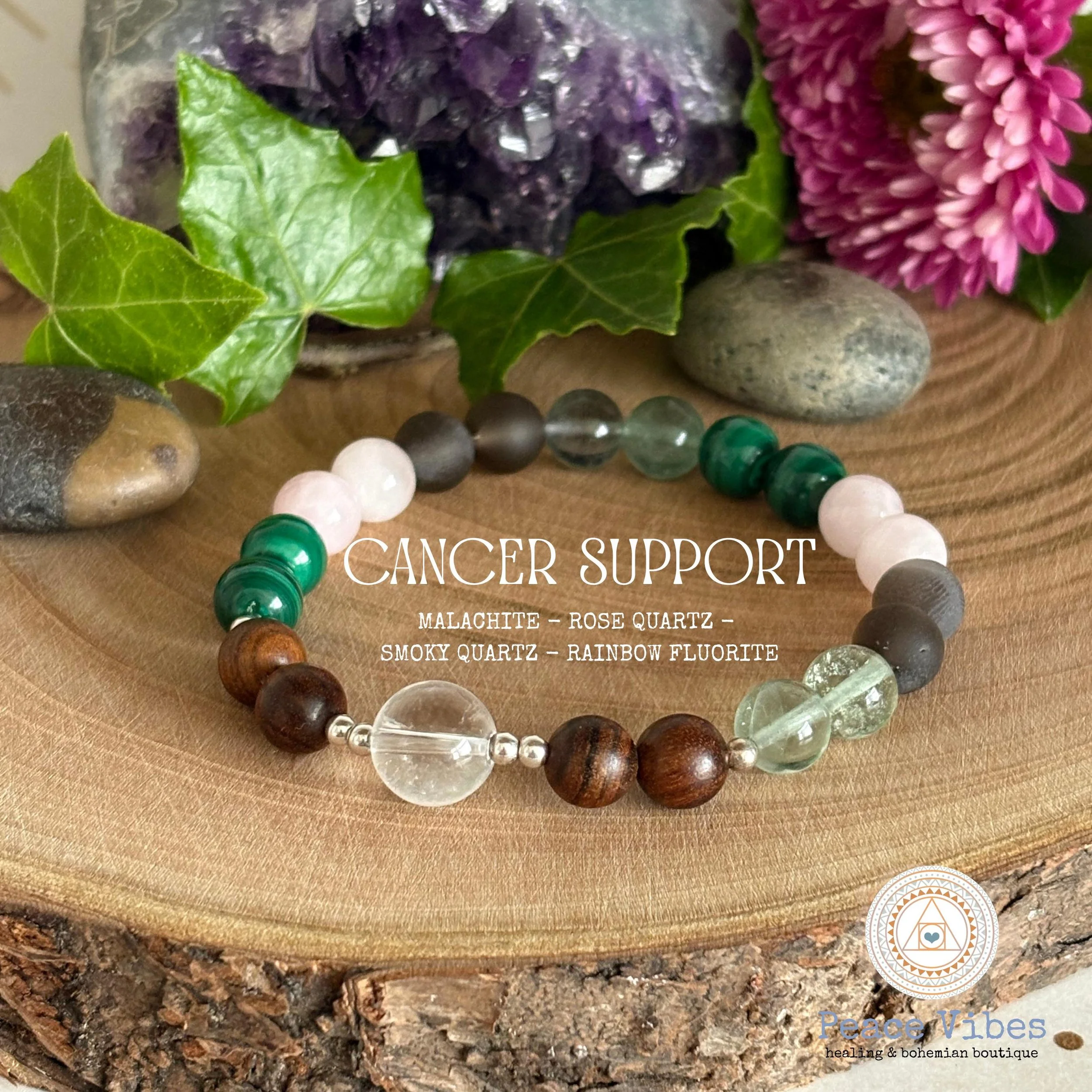 Cancer Support 8mm Healing Bracelet | Malachite Bracelet | Rose Quartz Bracelet | Cancer Support Jewellery | Cancer Treatment Gift