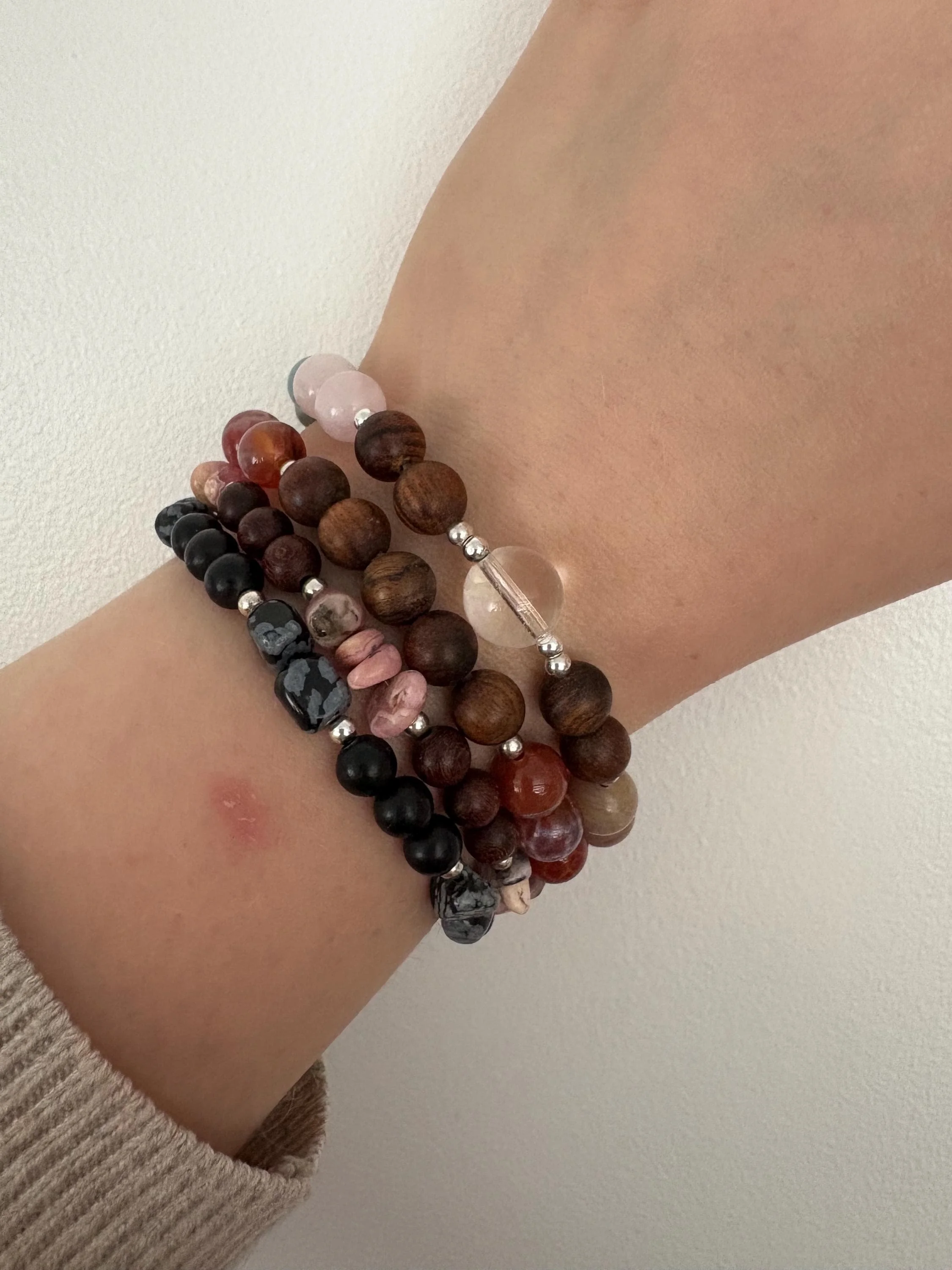 ✔️ Sterling silver and sandalwood accent beads add a unique twist to more traditional healing bracelet designs