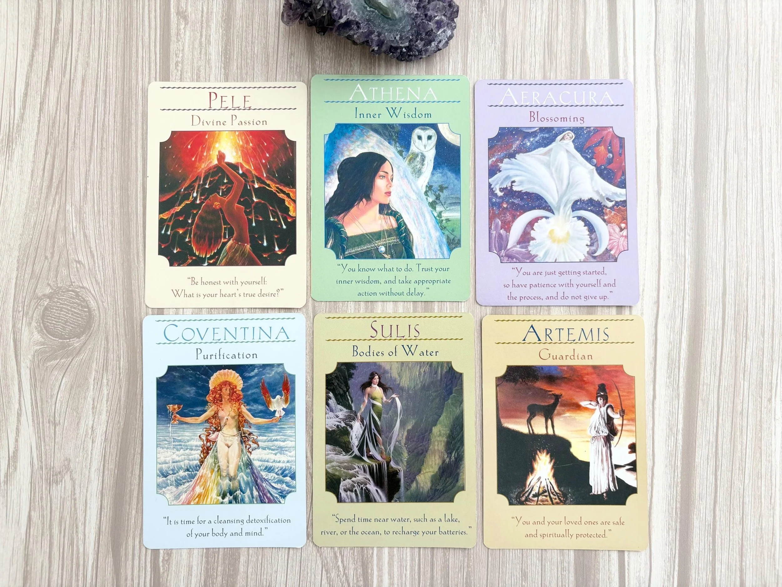 This listing is for the lovely Goddess Guidance oracle cards by popular former Hay House author Doreen Virtue. These cards have various different goddesses who are associated with different attributes or intentions. Personally still one of my favourite Doreen Virtue decks