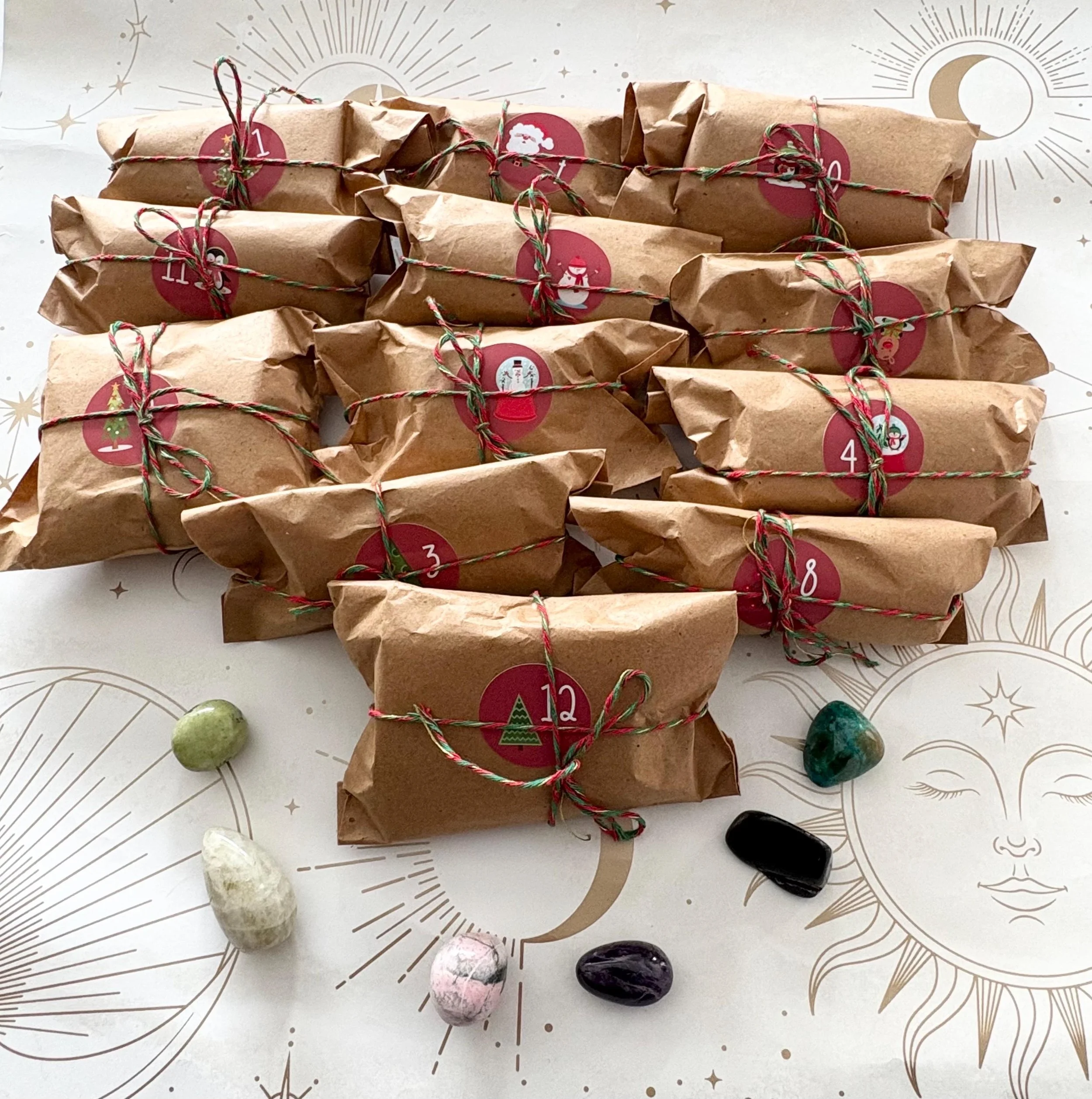 ✔️ 24 Day calendar consists of a mixture of tumbles, raw crystals, carvings, jewellery and a chakra set.