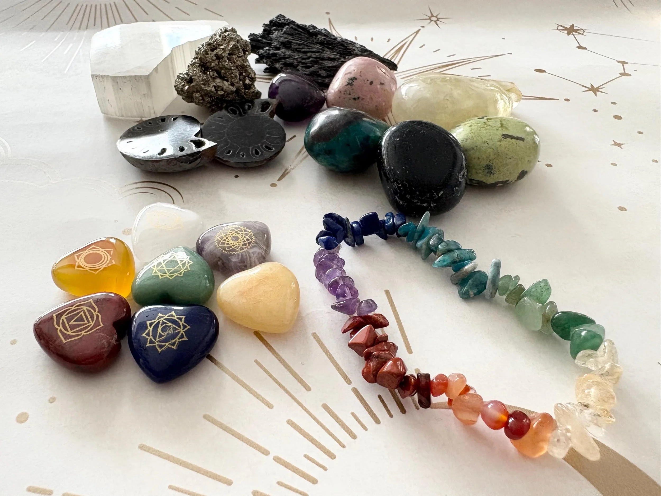 ✔️ 12 Day calendar consists of tumbles, raw crystals and a chakra set with bracelet.