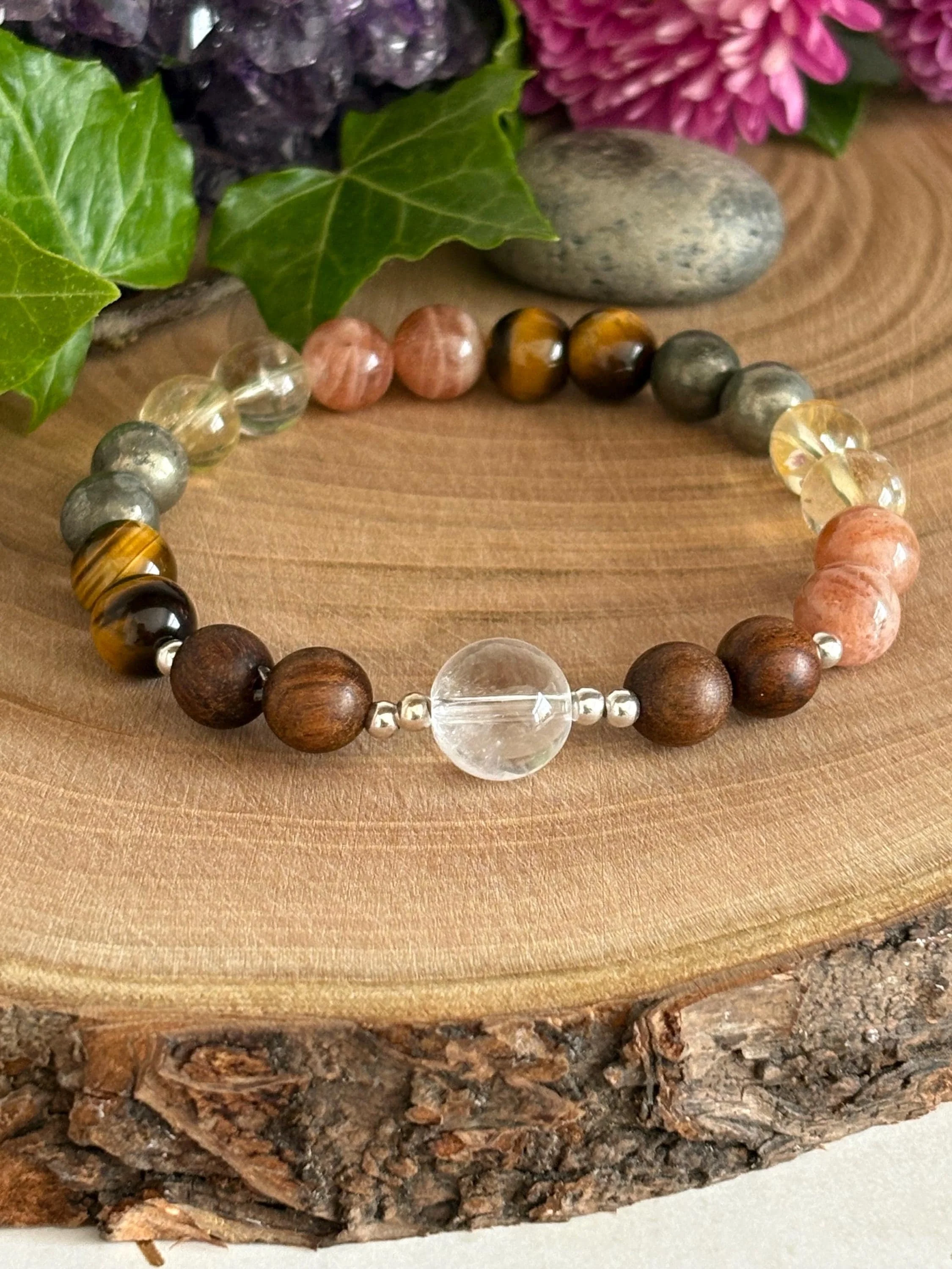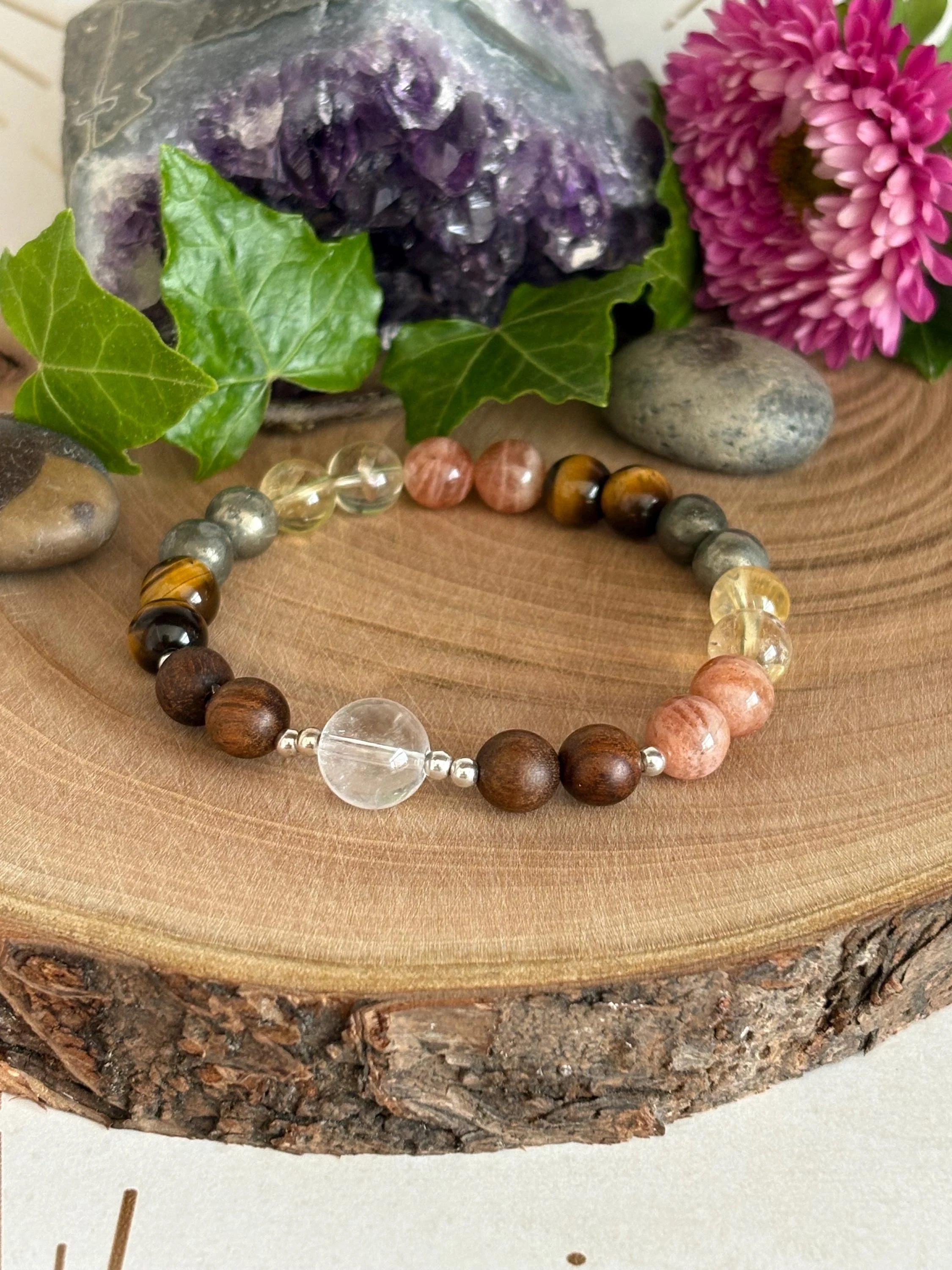 Strength & Confidence 8mm Healing Bracelet | Pyrite Bracelet | Sunstone Bracelet | Spiritual Jewellery | Intention Jewellery