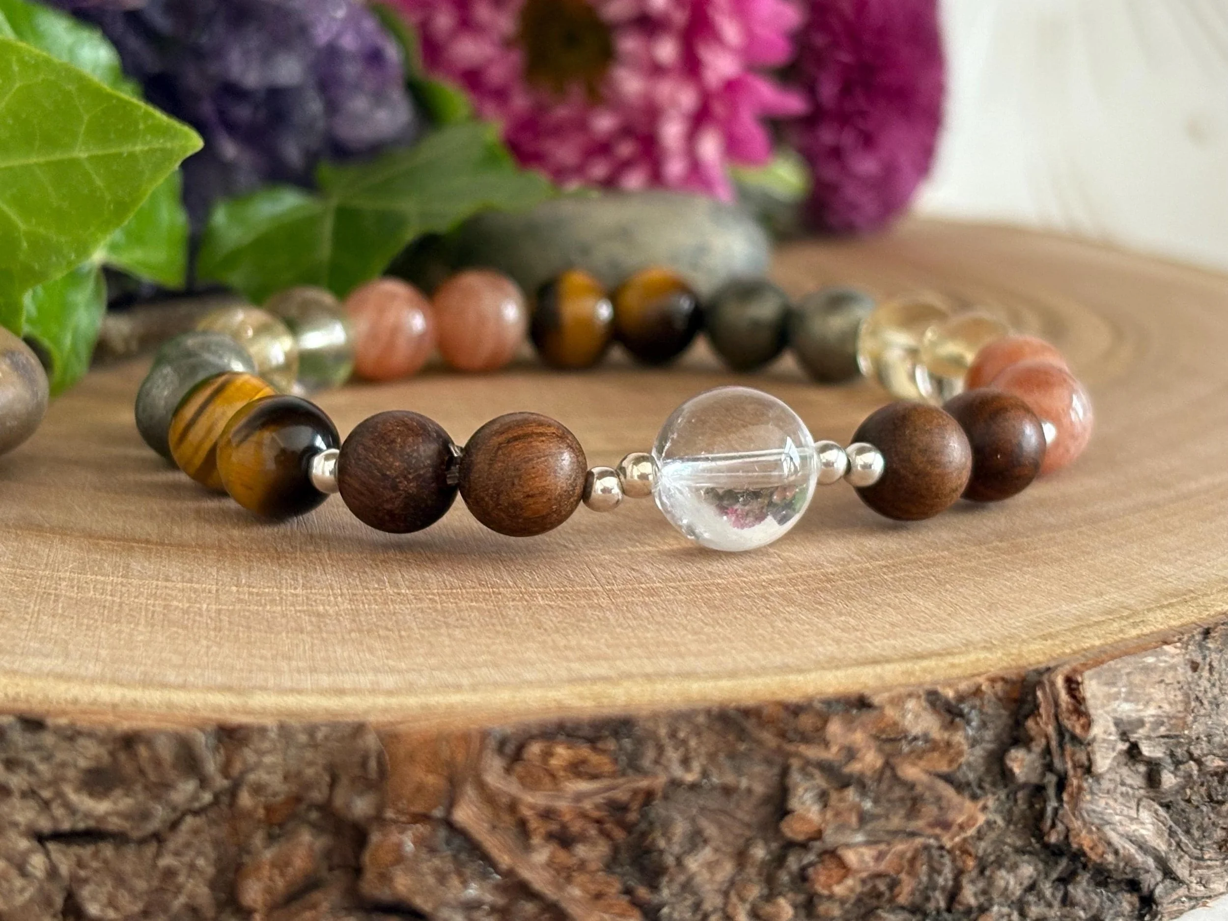 ✔️ Sterling silver and sandalwood accent beads add a unique twist to more traditional healing bracelet designs