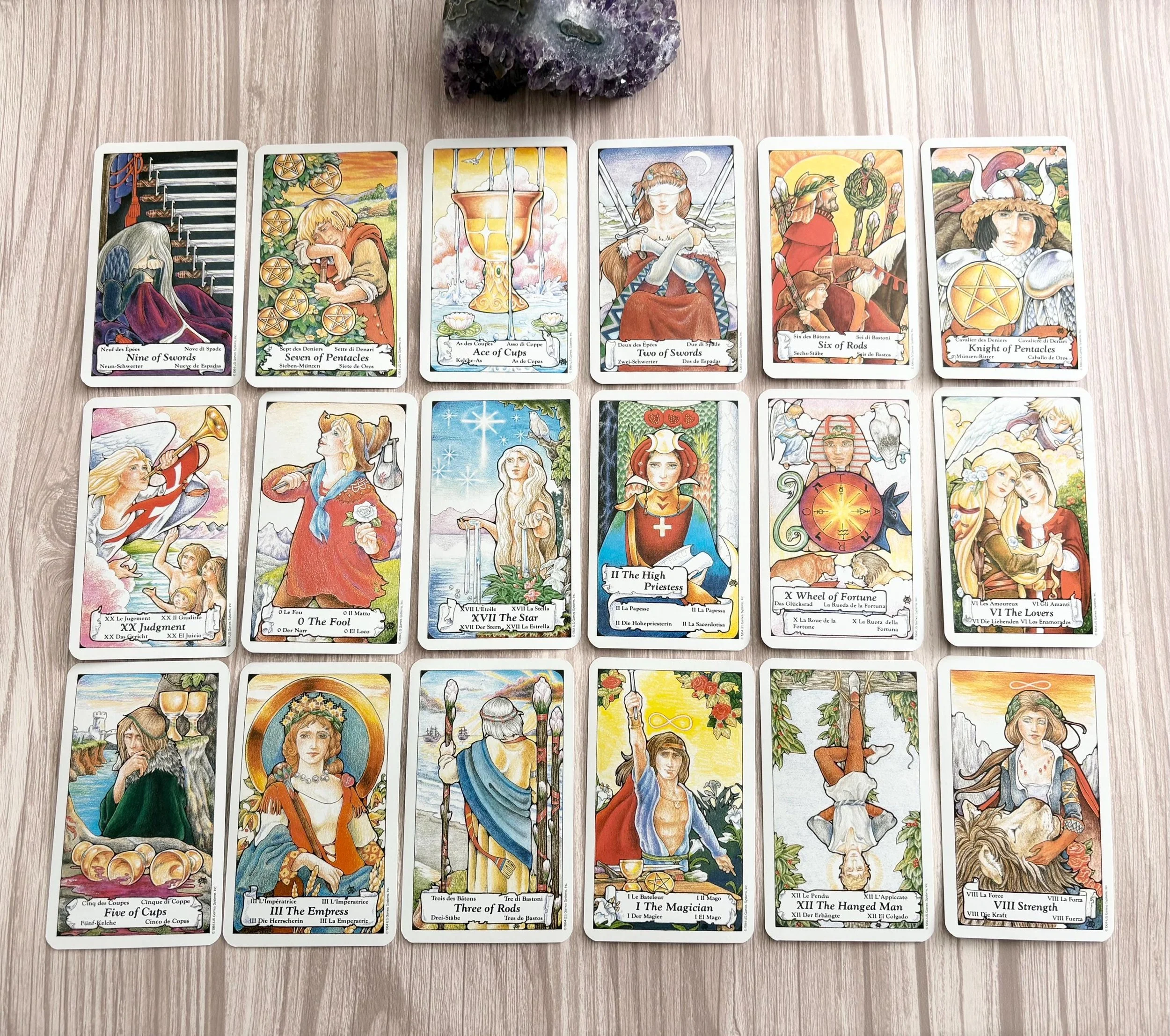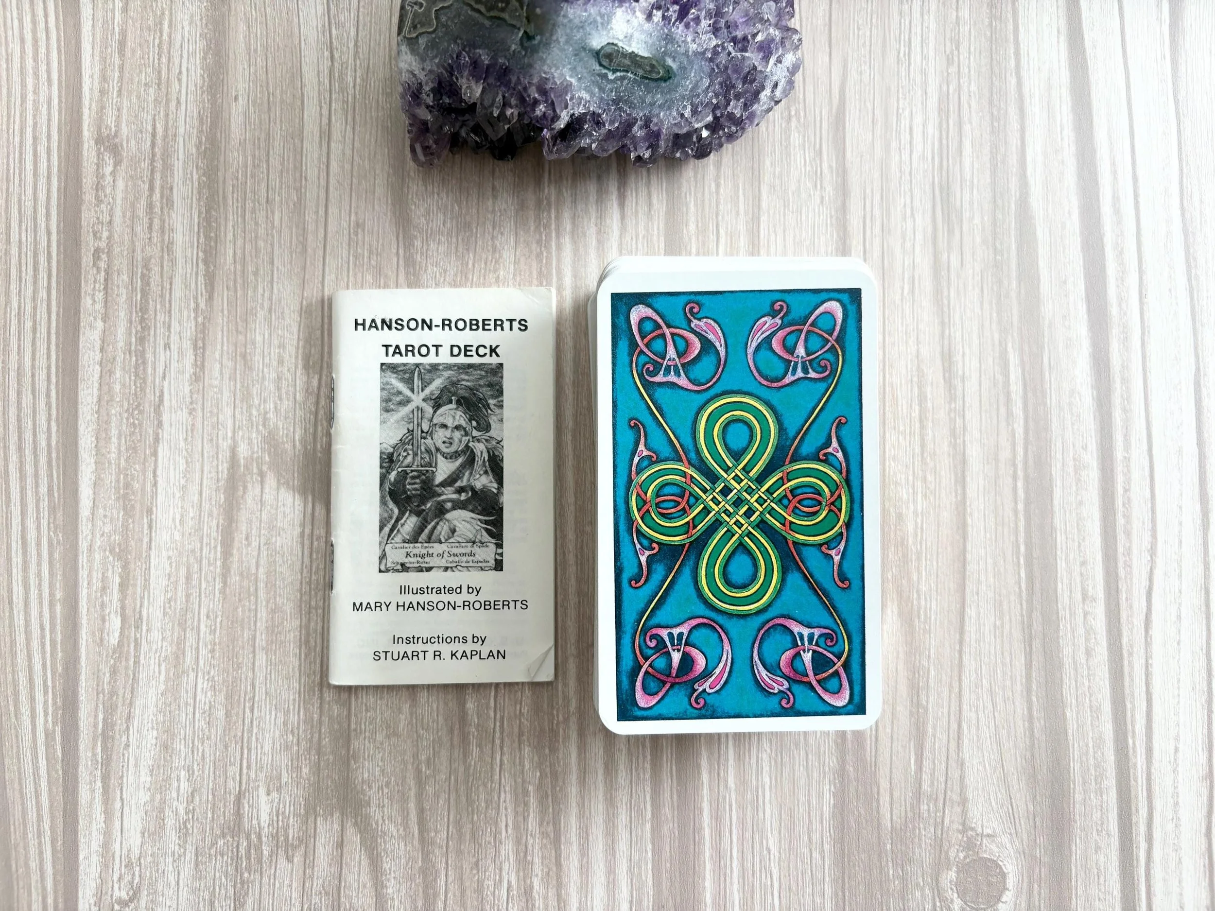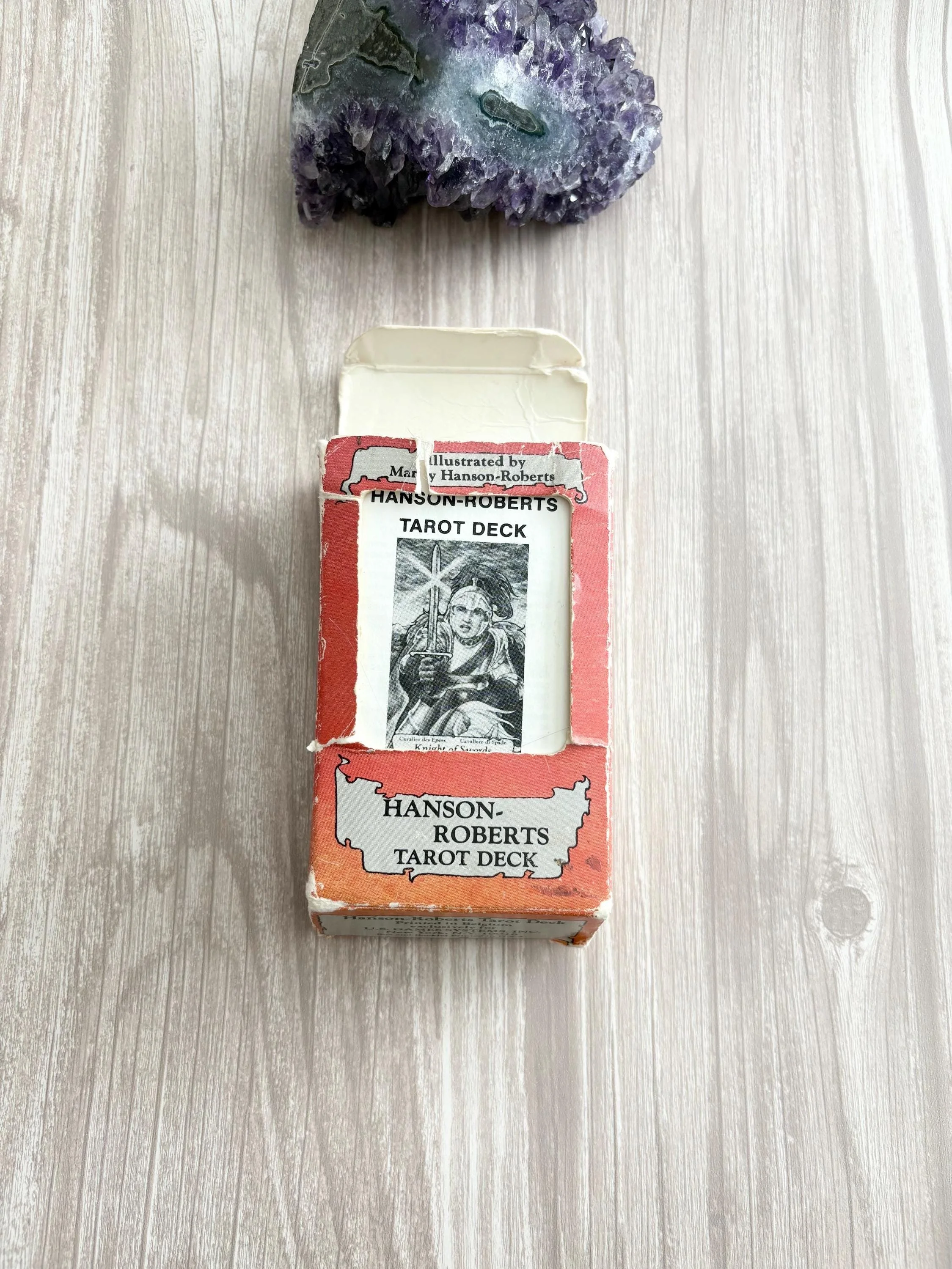 This listing is for the gorgeous Hanson Roberts tarot deck from 1985. Really cute deck, with wonderful card stock and small sized cards.